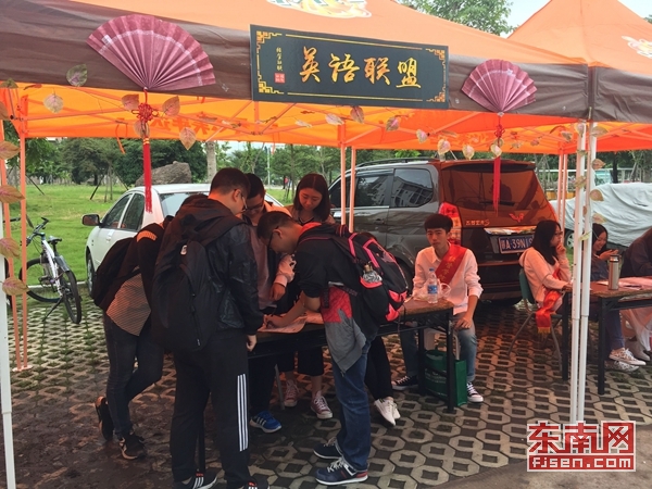 东南网10月14日讯(通讯员 陈芸)“怎么样才能写得好一手毛笔字?”“想炼成一手好看的毛笔字,来书法协会,加入我们门派,修炼秘籍—羲圣贴”……书法协会成员正在向前来咨询的小生传授“武功秘籍”。10月12日,福州大学经济与管理学院学生社团联合会携手院内16个社团举办第三届社团纳新活动。