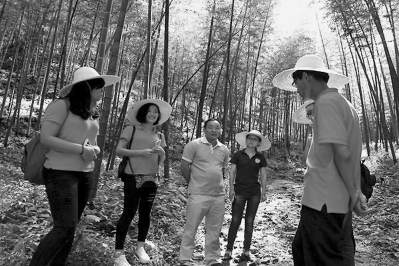 近日,由福州大学经济与管理学院研究生组成的赴泰宁县“互联网+”山区乡镇发展调研实践队深入大田乡,先后走访大田乡毛竹示范片区、笋竹加工厂和泰宁电商企业,开展实地考察、问卷调查以及电商培训等活动,助力笋竹产业搭乘“电商快车”,创建大田笋竹强乡。图为实践队员在当地笋竹示范区调研。(夏丽君 摄)