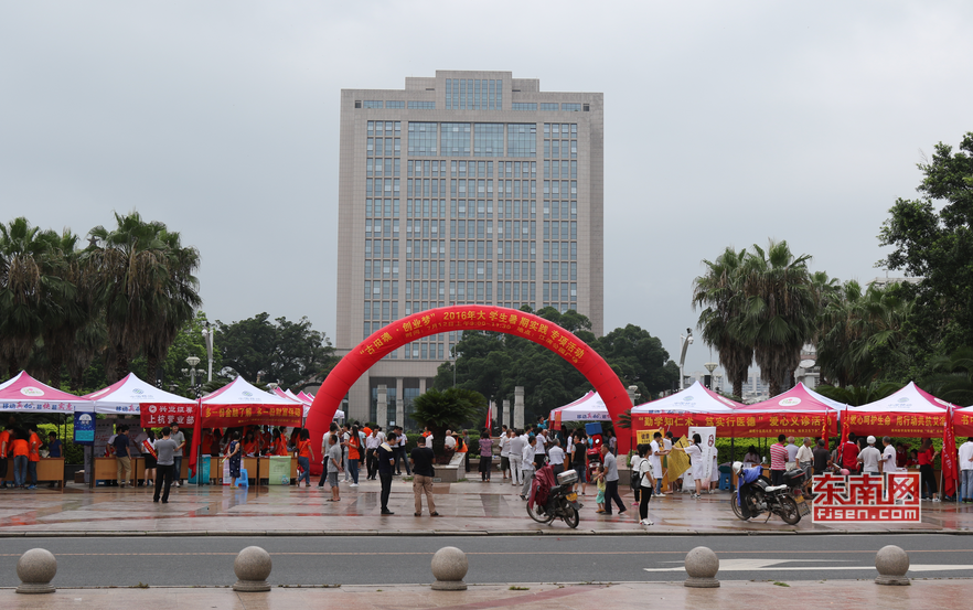 东南网7月12日讯(通讯员 郑嘉雯 黄鑫)7月12日上午,微雨蒙蒙,上杭县江滨公园广场上人头攒动。健康义诊、政策宣传、家电维修……来自福建各高校的在校大学生们组成14支志愿服务队一早就在这里忙开了。