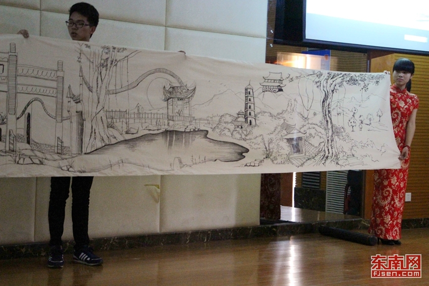 东南网4月25日讯(通讯员 叶晓芳 李玉梅)“谁知五柳孤松客,却住三坊七巷间……”来自福州大学建筑学院的黄雪徽一边吟诗,一边用皮影戏的手法,在长达五米的画卷上展示福州的古建筑,三坊七巷、乌塔、白塔等美景次第展开,引来一片惊叹声。