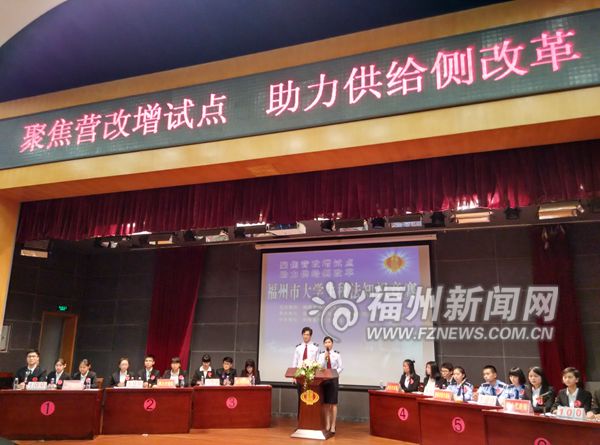 福州新闻网4月27日讯(记者 邱陵)27日下午,由福建省地税局主办,福州市地税局、福州市司法局和福州大学承办的“聚焦营改增试点 助力供给侧改革”福州市大学生税法知识竞赛在福州大学图书馆落幕。