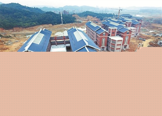 今年9月,福州大学石化学院(泉港校区)将迎来首批本科生。目前,位于泉港区前黄镇的校区正在抓紧施工。该校区由泉港区人民政府与福州大学、福建石化集团公司三方合作共建。项目共征用土地约892亩,其中,校区547亩。校舍工程一期计划投入4亿元。截至上个月月底,11幢主要建筑已经封顶,正在抓紧内外装修及配套设施的完善。按照计划,今年3月份,学院建设任务将完成并交付福州大学使用。图为日前航拍的实验楼、教学楼。 (陈起拓 刘泽阳 摄)