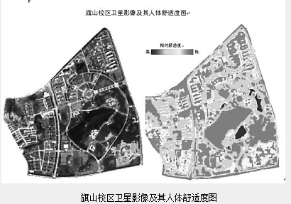 福州大学的徐涵秋教授进一步将这些气象数据与中高分辨率遥感影像数据集成建模,研制出旗山校区的第一张夏季人体舒适度图。从所研制的人体舒适度图来看,旗山校区经过近年的景观和生态改造,人体舒适度有了明显的提高。