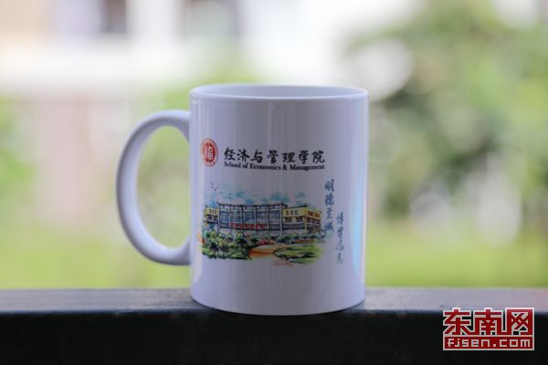 福州大学经济与管理学院纪念版马克杯。杜协峻摄