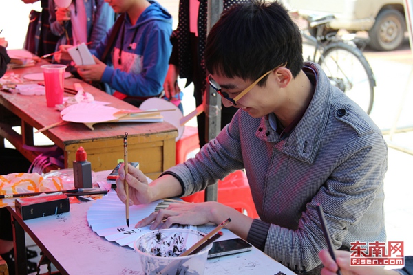 东南网4月13日讯(通讯员 张惠敏)“画扇有信,执此四进”,4月12日,福州福州大学2013级金融2班、财务管理1班、电子信息类3班以及2013级物联网工程专业在青春广场联合举办了一场“DIY扇子”活动。同学们在扇子上描绘与“四进四信”主题相关的图画,在绘画过程中共同学习。