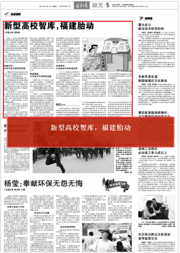 在福建,整合高校人才和学科资源,建设新型高校智库,这样的共识正在凝聚。除了教育部门顶层设计的胎动,各高校在新型智库建设方面,也正进行着积极的探索。