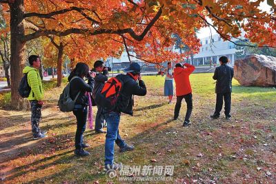 近日,福州大学老校区内的枫叶正红,吸引不少市民和摄影爱好者前往赏枫和拍摄。读者 陈奇 摄