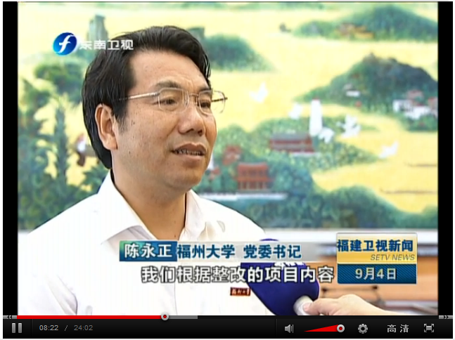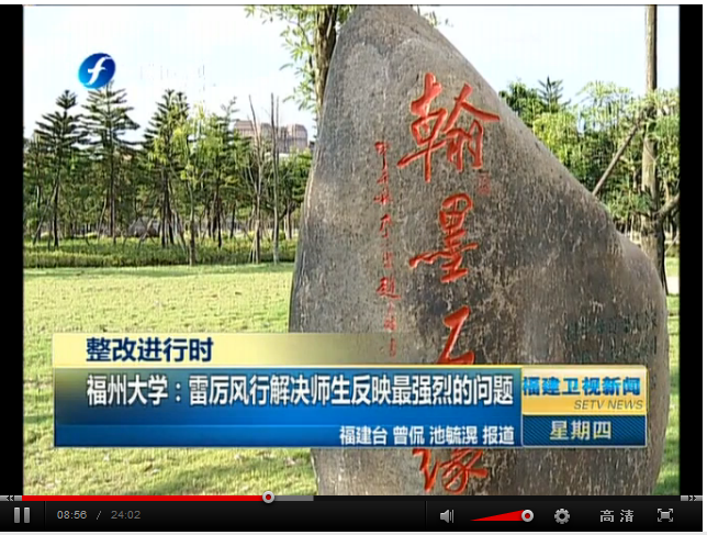 2014年9月4日晚东南卫视《福建卫视新闻》以《福州大学:雷厉风行解决师生反映最强烈的问题》为主题,报道了我校落实群众路线教育实践活动整改问题的各项举措。报道截图和链接如下: