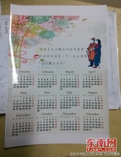 近日,福州大学阳光学院人文系举办“三行家书”年历设计大赛,优秀参赛作品频出,句句暖心,作品发表在新浪微博上引起众多网友围观转载。