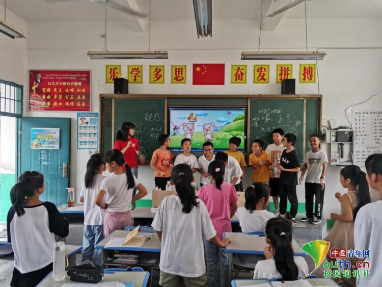 中国青年网莆田9月1日电(中国青年网通讯员 黄锦辉)7月13日,福州大学土木工程学院“百年红船精神进课堂,闽中革命事迹驻我心”实践队来到莆田市涵江区大洋学校开展暑期社会实践活动。支教队员们寓教于乐,将饶有趣味的教育活动带入课堂。让小朋友们在体会多姿多彩的校园生活的同时践行勤俭节约、学习党史故事、谱绘光辉未来。