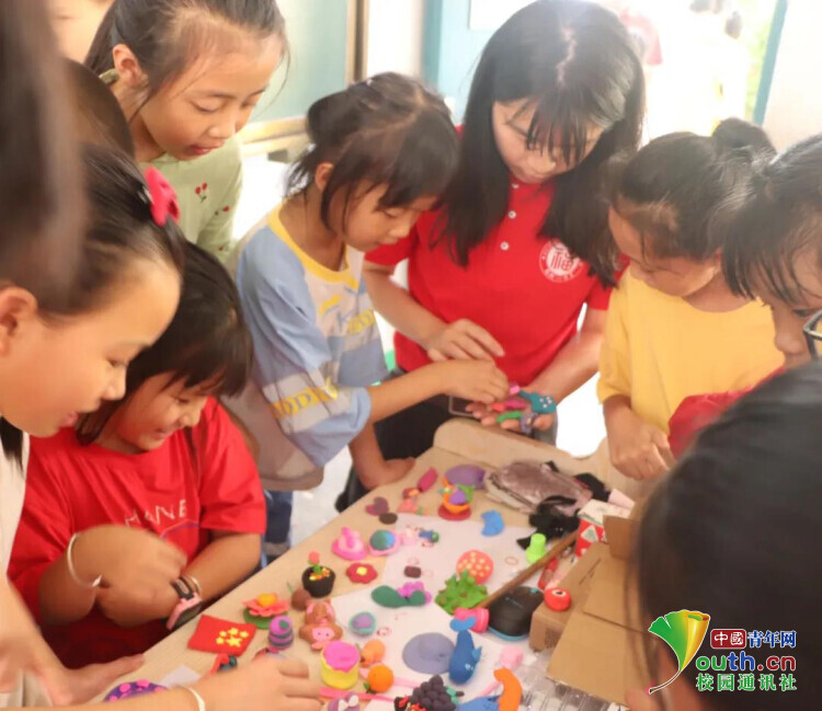 图为“百年红船精神进课堂,闽中革命事迹驻我心”实践队成员收集并展示同学们的粘土作品。中国青年网通讯员 吴涵瑞 摄