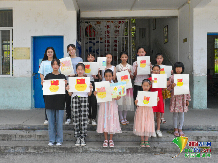 图为绘画课程结束后当地小朋友与部分实践队队员合照。 中国青年网通讯员 蔡曾 摄
