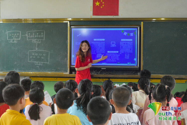 图为实践队队员给当地小朋友上禁毒防艾主题课程。中国青年网通讯员 蔡曾 摄