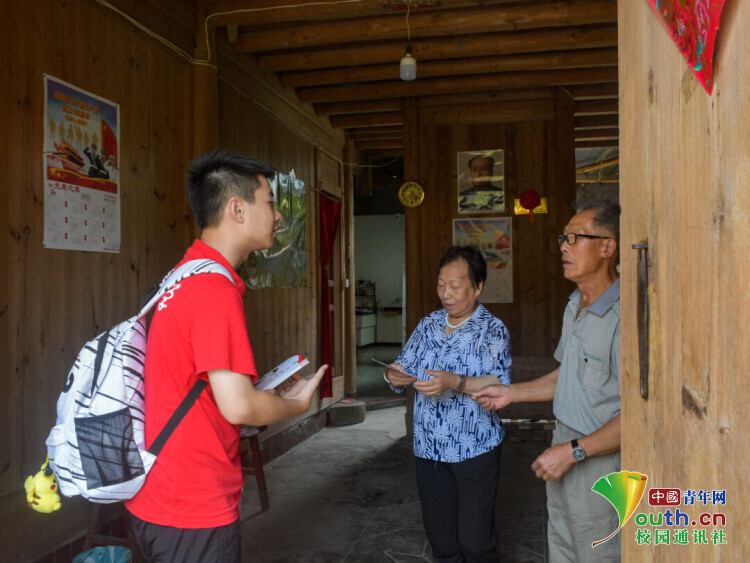 图为实践队队员与村民交谈,了解当地发展状况。中国青年网通讯员 蔡曾 摄