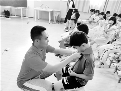 实践队队员首先和曹坊中心小学学生一同观看了情景剧《风展红旗如画》。《风展红旗如画》是以宁化红色历史为原型,把宁化苏区革命运动的壮阔历史生动展现出来的情景剧。看完情景剧后,实践队员给每一位同学戴上鲜艳红领巾,鼓励他们学好红色革命精神,努力奋斗,争取成为国家栋梁之材。