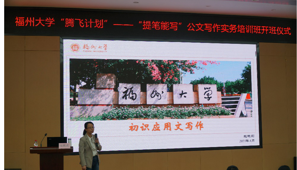 据悉,本期福州大学“腾飞计划”能力提升营面向全校,通过选拔最终确定80名营员参与本期“腾飞计划”能力提升营——“提笔能写”公文写作实务培训班的培训学习。提升营主要采用校内集中授课、交流研讨的培训形式,从而提升学生的理论造诣、思想水平、认知能力、文字功底等综合素质,促进学生德智体美劳全面发展。