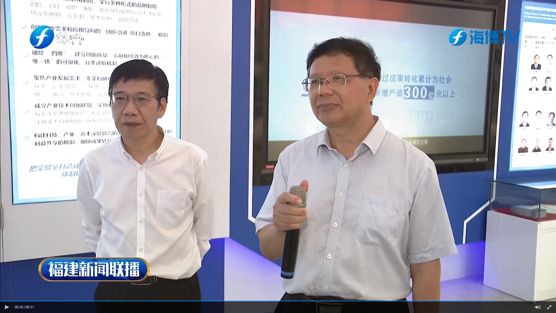 省领导走访中科院海西研究院闽都创新实验室,郭太良教授(右一)介绍技术攻关情况