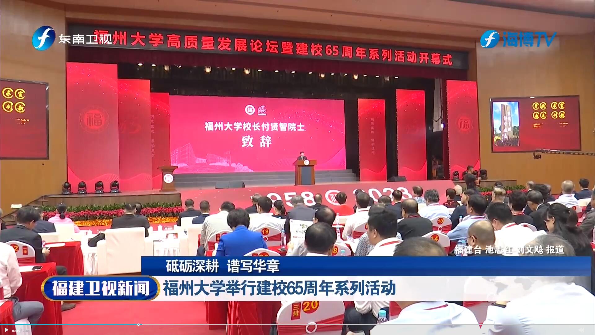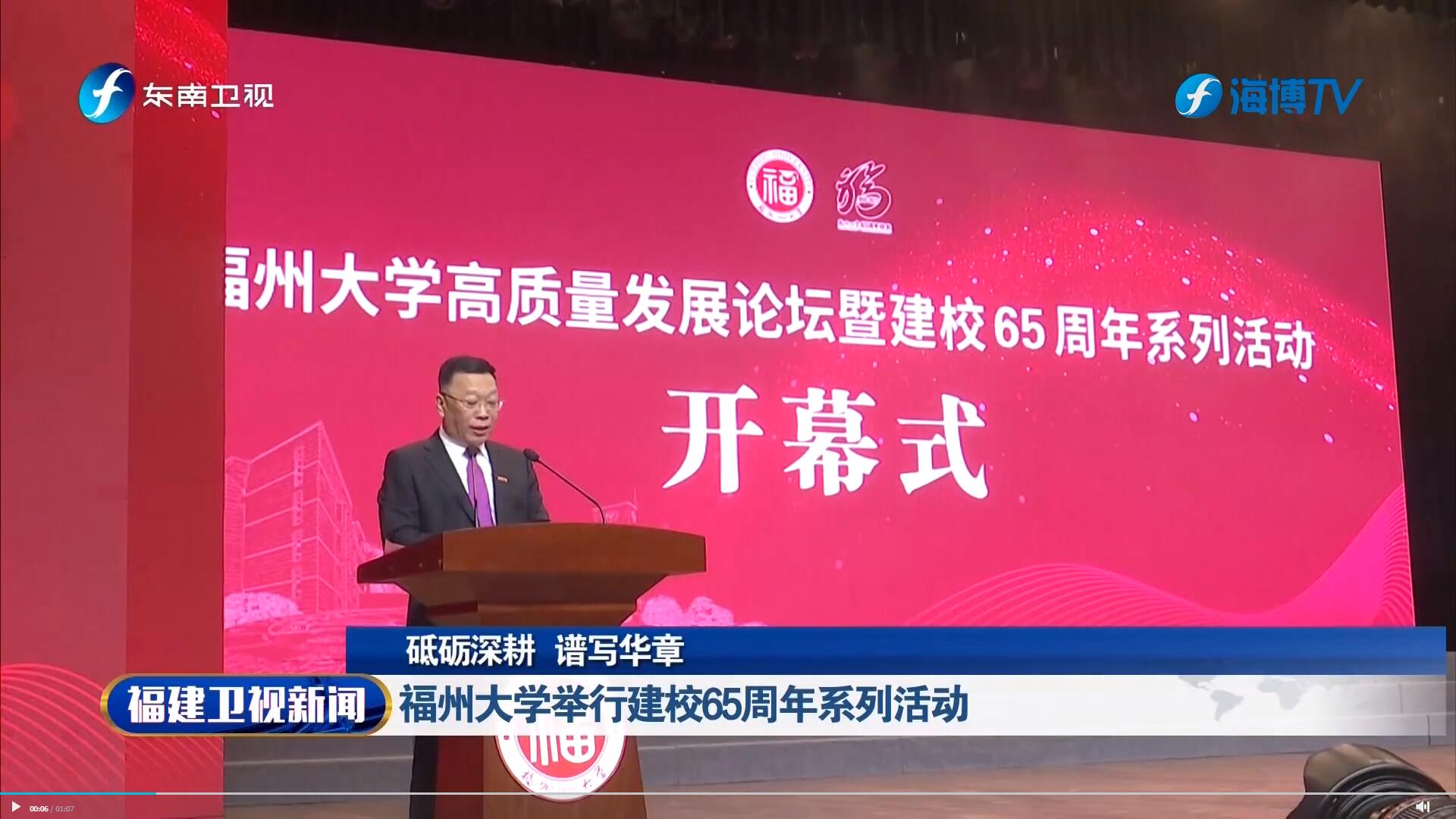 福州大学高质量发展论坛暨建校65周年系列活动开幕式今天在旗山校区举行。建校65周年来,福州大学抢抓机遇,跨越发展,跻身“211工程”重点建设大学,入选国家“双一流”建设高校。福州大学表示,将在习近平新时代中国特色社会主义思想的指引下,更加坚定地走在内涵建设高质量发展的道路上,更加自信地朝着“建成具有若干世界一流学科的国际知名高水平大学,成为世界一流的东南强校”的宏伟目标大步迈进,更加奋力地谱写建设教育强国和教育强省的福大篇章,为全面建设社会主义现代化国家、全面推进中华民族伟大复兴作出新的更大贡献。