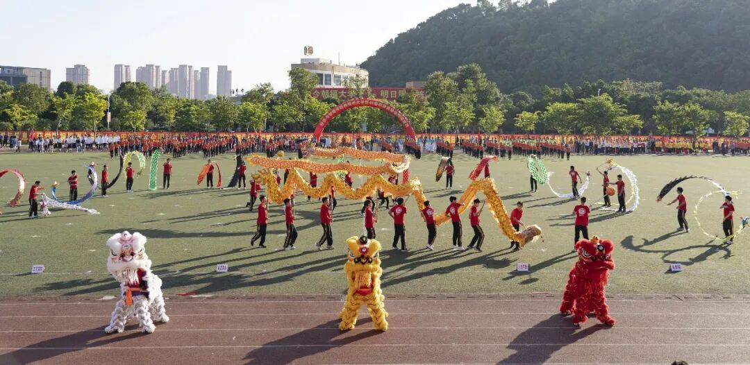 激昂铿锵的鼓点音乐下,6人舞狮、20人舞龙、18人舞彩带龙——福州大学舞龙舞狮协会在校运会开幕式上热情洋溢的表演赢得了满堂喝彩。