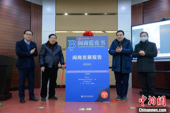 中新网福州1月11日电 (龙敏 彭莉芳)由社会科学文献出版社出版的《闽商蓝皮书:闽商发展报告(2020)》新书发布会11日下午在福州举行,该书由福州大学、福建省闽商文化发展基金会、中国商业史学会共同主持编撰,福州大学闽商文化研究院、闽商杂志社等单位参与撰稿。发布会采取线上线下的方式进行。