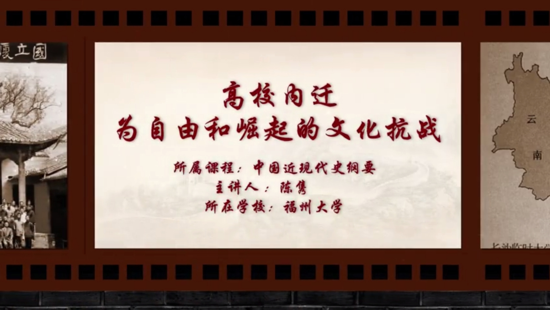 本期展示的是福州大学陈隽老师的课程《高校内迁:为自由和崛起的文化抗战》。