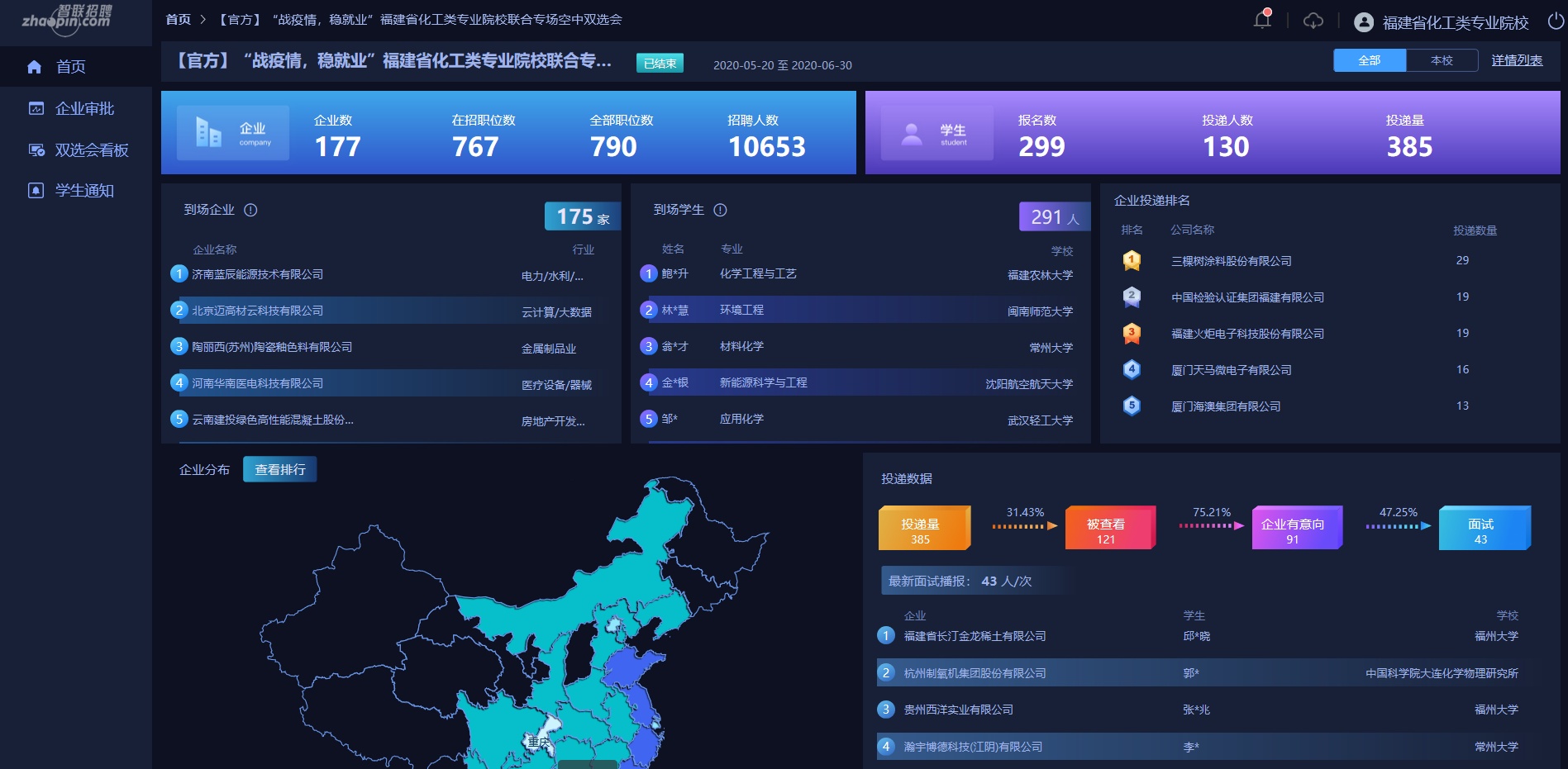 福建省化工类专业联合专场空中双选会(来源:福州大学)