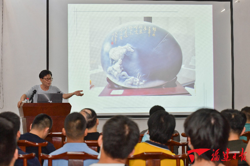 福建日报App-新福建6月13日讯(福建日报记者 吴鹏)13日下午,福建省寿山石文化艺术研究会特别邀请福州大学厦门工艺美术学院庄南鹏教授在福建省海峡民间艺术馆作《寿山石雕艺术的传承与创新——与现代玉石雕艺术之比较》专题讲座。
