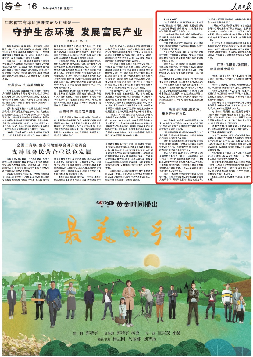 6月9日,《人民日报》头版头条刊发通讯《保居民就业——让千家万户端稳饭碗(在危机中育新机 于变局中开新局)》,以福州大学保障毕业生就业为例,点赞福建省拓渠道、挖潜力,重点群体有岗位。