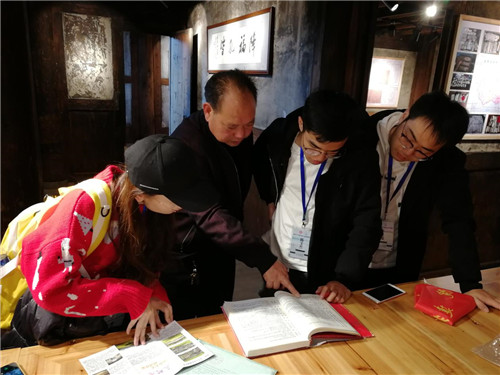 三三对厝保护理事会会长郑尔亮为大家讲解三对厝资料(黄锦涛摄)