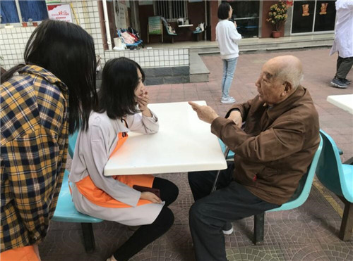 爷爷与支部同学聊起全家参军的经历。洪佳敏 供图