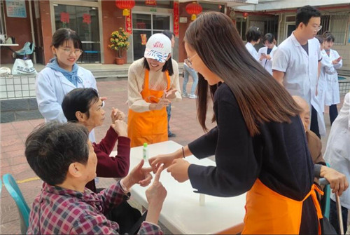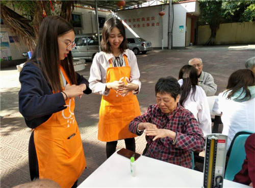 支部同学教老人们做保健手指操。吴舒婷 供图