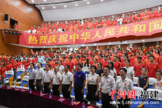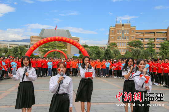 中新网福建新闻10月3日电(俞文芳 陈姿静 刘龙杰)1日,福州大学福万广场人潮涌动,近五千名在校师生注目升旗仪式、万众一心唱响《歌唱祖国》,庆祝新中国成立70周年。