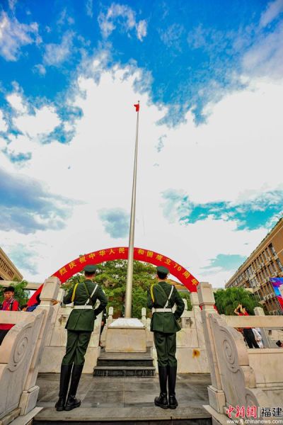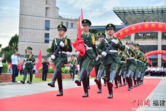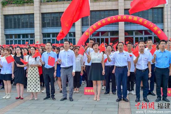 中新网福建新闻10月6日电(钟欣)盛世华诞,普天同庆。10月1日清晨6:50,迎着秋日朝阳,福州大学师生近万人在旗山校区福万广场隆重举行升国旗仪式,庆祝中华人民共和国成立70周年,这是福州大学连续第13年在国庆节举行隆重升旗仪式。