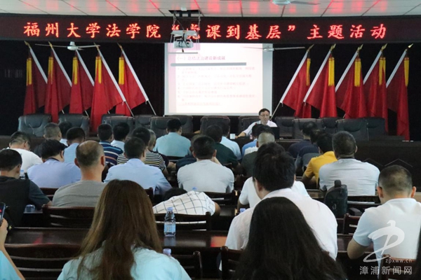 本网讯(通讯员 郑小平)为深入贯彻落实习近平新时代中国特色社会主义思想,值此喜迎新中国成立70周年之际,7月9日,福州大学法学院副院长、博士生导师丁国民到前亭镇开展“党课到基层”主题活动。