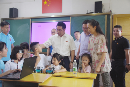 同时,实践队在当地开展“红色科技成长营”,并将北斗团队自主研发的“爱学乐”编程教学机器人带入支教课堂中,在孩子中大受欢迎。福州大学党委林生副书记亲切走访象溪村小学,关心孩子们的学习情况,并对实践队的成果表示充分肯定。实践队以寓教于乐的形式助力乡村科技教育,点燃孩子们对科技知识的激情之火。