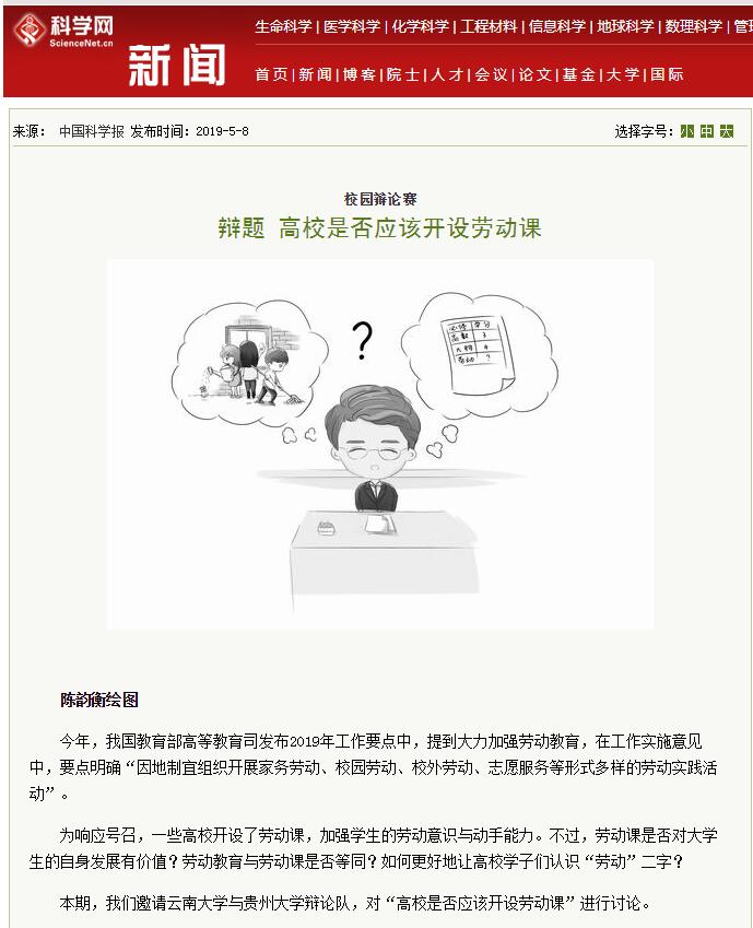 中国科学报、科学网(2019-05-08):高校是否应该开设劳动课