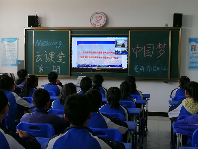 4月16日下午,福州大学董海峰教授以“中国梦”为主题,开展了云课堂第一讲课程,也标志该支教项目的正式启动。主讲人董海峰教授从中国梦的由来、中国梦的内涵与中国梦的实现这三个方面展开了授课,通过具体的讲解与播放相关视频,令宁夏固原市三营中学的学生们深入了解了中国梦的要点以及实现中国梦必然要凝聚中国力量、走中国道路、弘扬中国精神等内容。最后董海峰教授和宁夏的学生跨地域同诵诗歌《中国梦》作为结尾,激起了学生们的国家情怀与民族情怀。