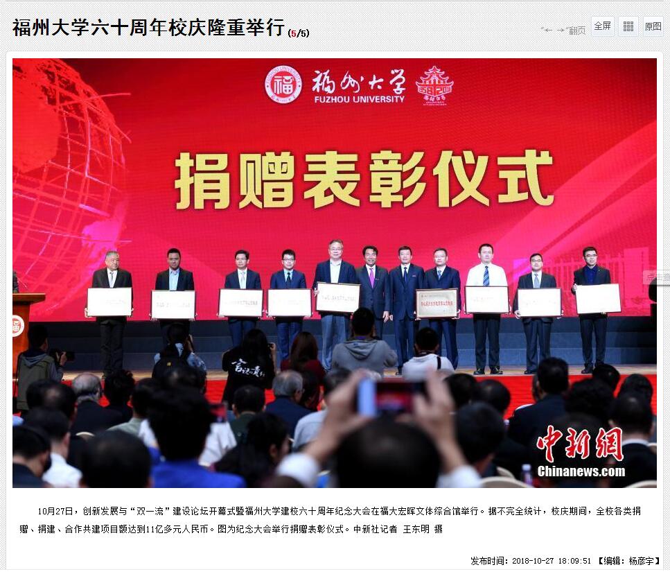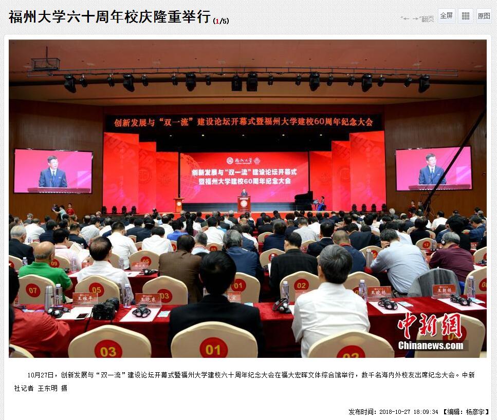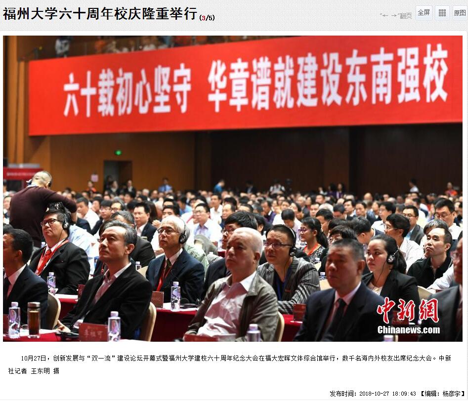 10月27日,创新发展与“双一流”建设论坛开幕式暨福州大学建校六十周年纪念大会在福大宏晖文体综合馆举行,数千名海内外校友出席纪念大会。中新社记者 王东明 摄