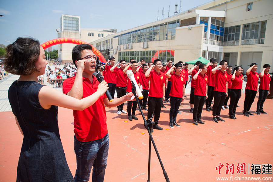福州大学紫金矿业学院团委书记李金土带领学生代表重温入团誓词 李南轩 摄