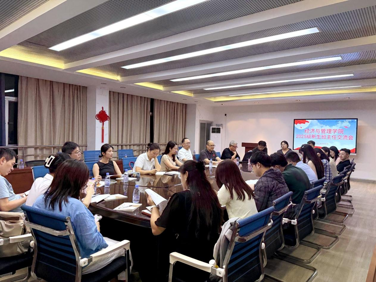 融媒中心讯/为加强新生教育管理,提升班主任队伍育人能力,9月24日晚,经济与管理学院在铜盘校区A栋二楼会议室召开2025级本科新生班主任交流会。学院党委书记石炳文、党委副书记王三强、党委副书记兼纪委书记高银燕出席会议,全体新生班主任、辅导员及新生代表参加会议。会议由院党委副书记高银燕主持。