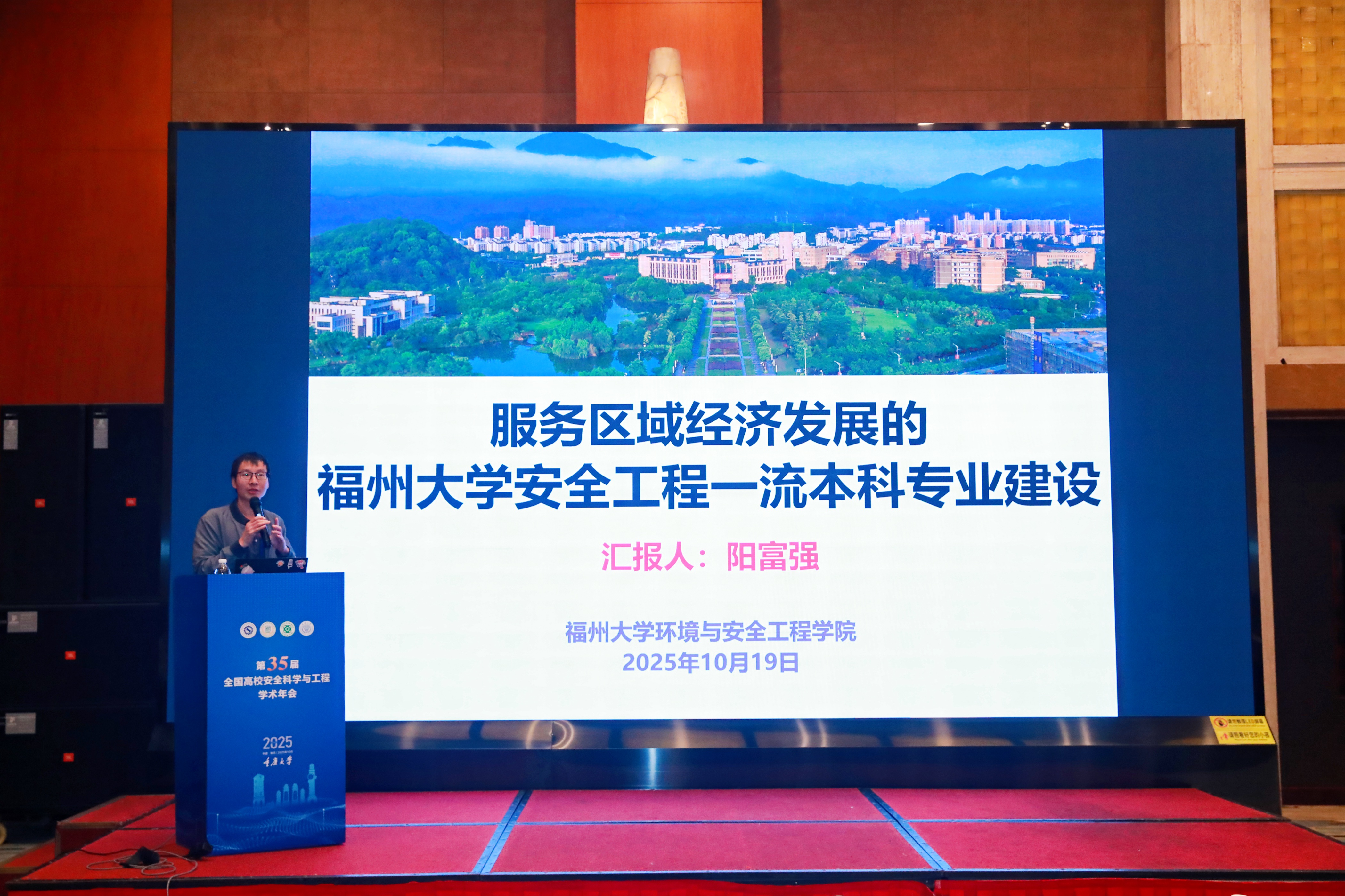 会议期间,环安学院师生与来自全国多所高校及科研机构的专家学者进行了广泛而深入的学术交流。在专题研讨环节,阳富强副院长主持研讨会,并应邀作题为《服务区域经济发展的福州大学安全工程一流本科专业建设》的大会报告。报告系统介绍了我校安全工程专业在对接区域战略需求、优化人才培养机制、深化产教融合等方面的探索实践,展示了环安学院在一流专业建设方面的特色成果,引发与会专家的积极反响。