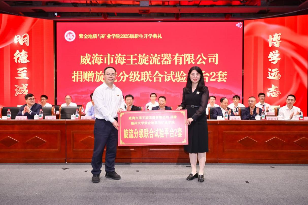 在随后的典礼上举办了一场凝聚着社会深情与产业厚望的捐赠与颁奖仪式。美卓集团、山东华特磁电、南昌矿机、浙江艾领创、威海海王等多家行业领军企业慷慨捐资奖教奖学,更捐赠了一批代表行业前沿的先进科研设备,以实实在在的“硬核”力量,为学院育人事业与科技创新注入强劲动能。与会领导嘉宾共同为获得美卓奖学金、华特磁电奖学金和海王奖学金的同学颁奖。