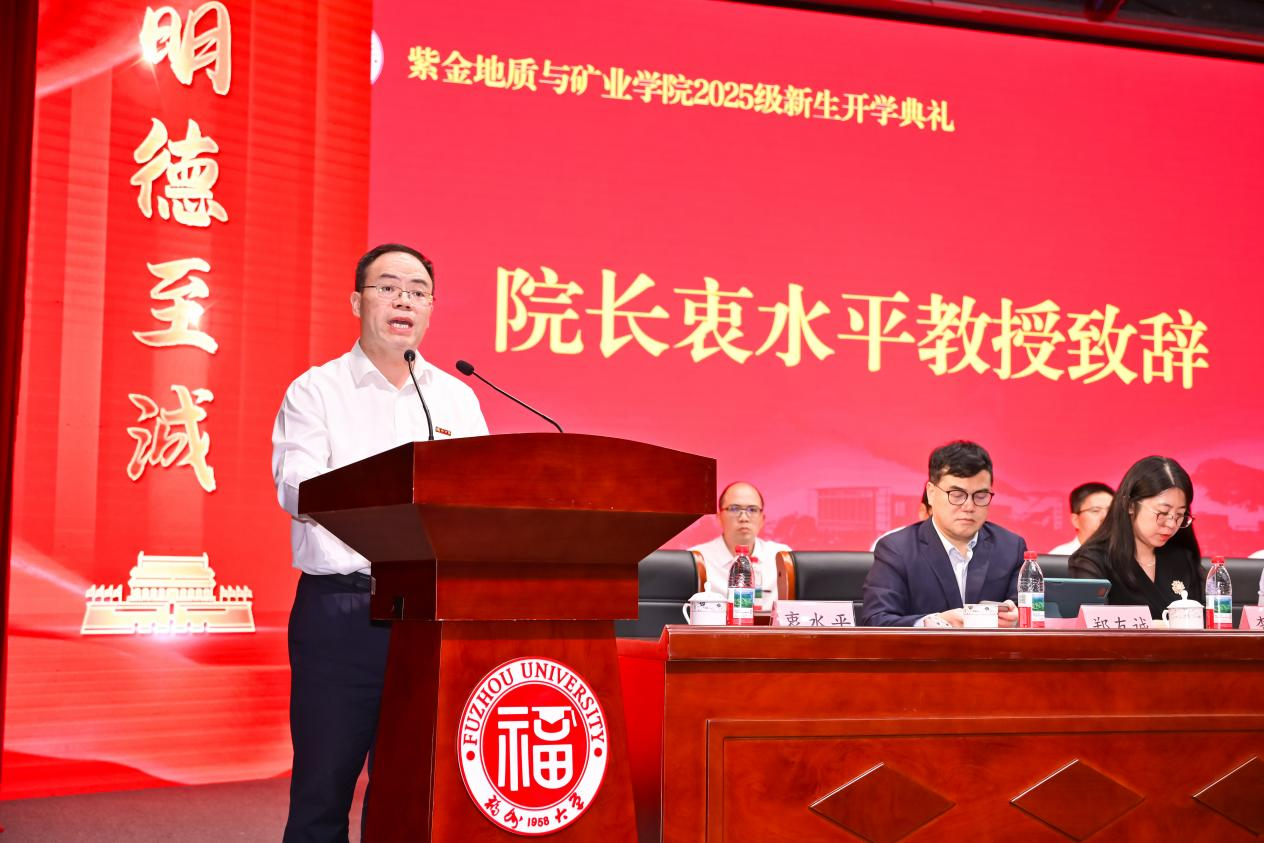 院长衷水平教授回顾了“紫金模式”十八载风雨兼程所谱写的辉煌篇章,并对2025级全体新生提出三点殷切期望:一要立大志、担使命,将个人星火自觉汇入民族复兴的万里征程,做“矿业报国”的追梦人、做心怀“国之大者”的追梦人;二要勤治学、强本领,做“知行合一”的学习者,以勤勉为舟,以思考为楫,深潜学术瀚海,锻造成行业栋梁、终身学习的典范;三要修品德、践初心,在实践的熔炉里淬炼真金,做“感恩笃行”的福大紫金人,于时代浪潮中挺立其身,作顶天立地、无愧于历史的福大紫金人!