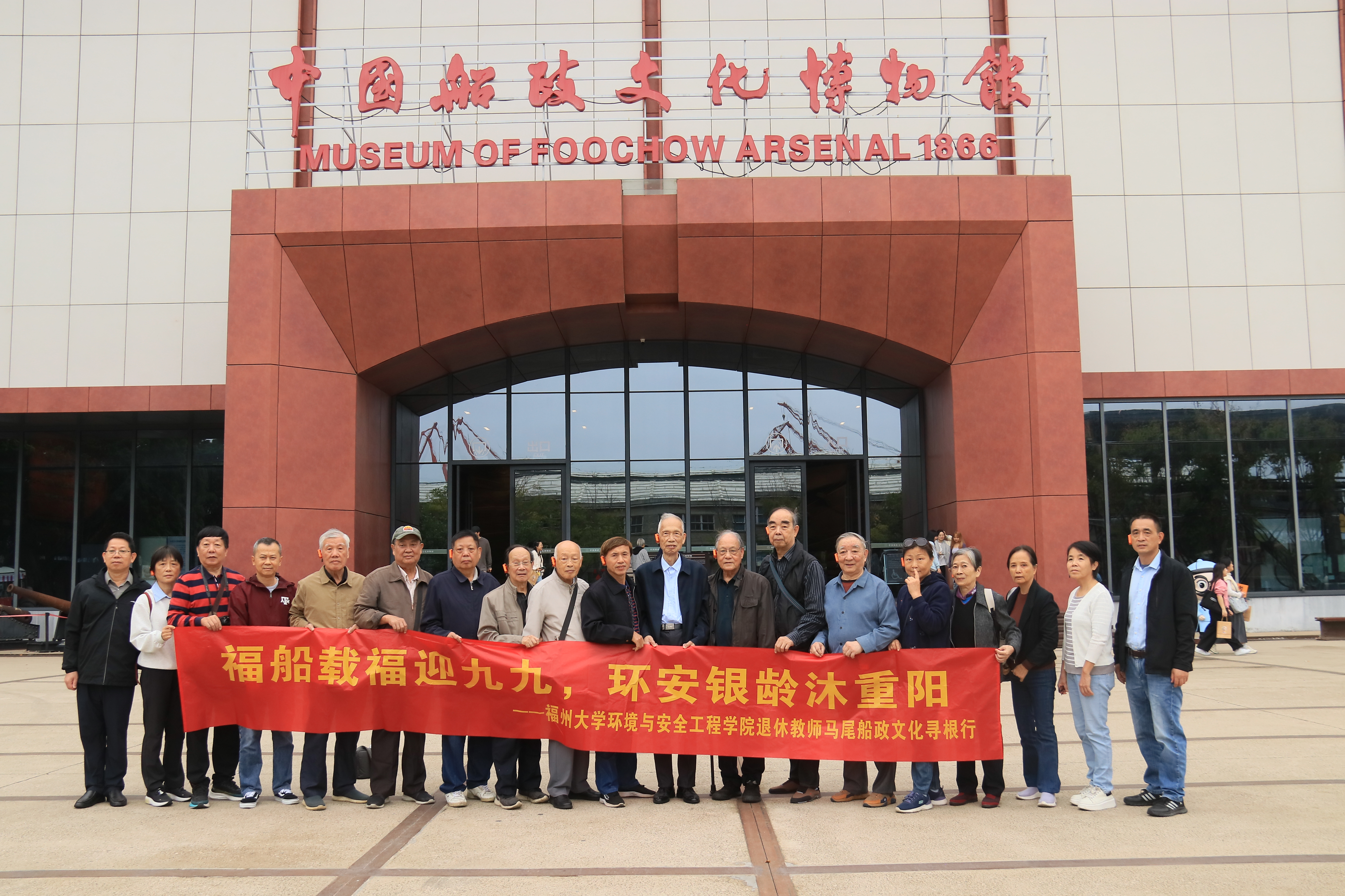 融媒中心讯/10月30日,在重阳佳节之际,福州大学环境与安全工程学院组织退休教师开展“福船载福迎九九,环安银龄沐重阳”主题马尾船政文化寻根行活动。院党委书记刘旺、办公室主任彭桂平等陪同退休教师共同前往马尾昭忠祠和船政文化城,感受福州优秀历史文化,体会船政文化的丰富内涵与历史价值。