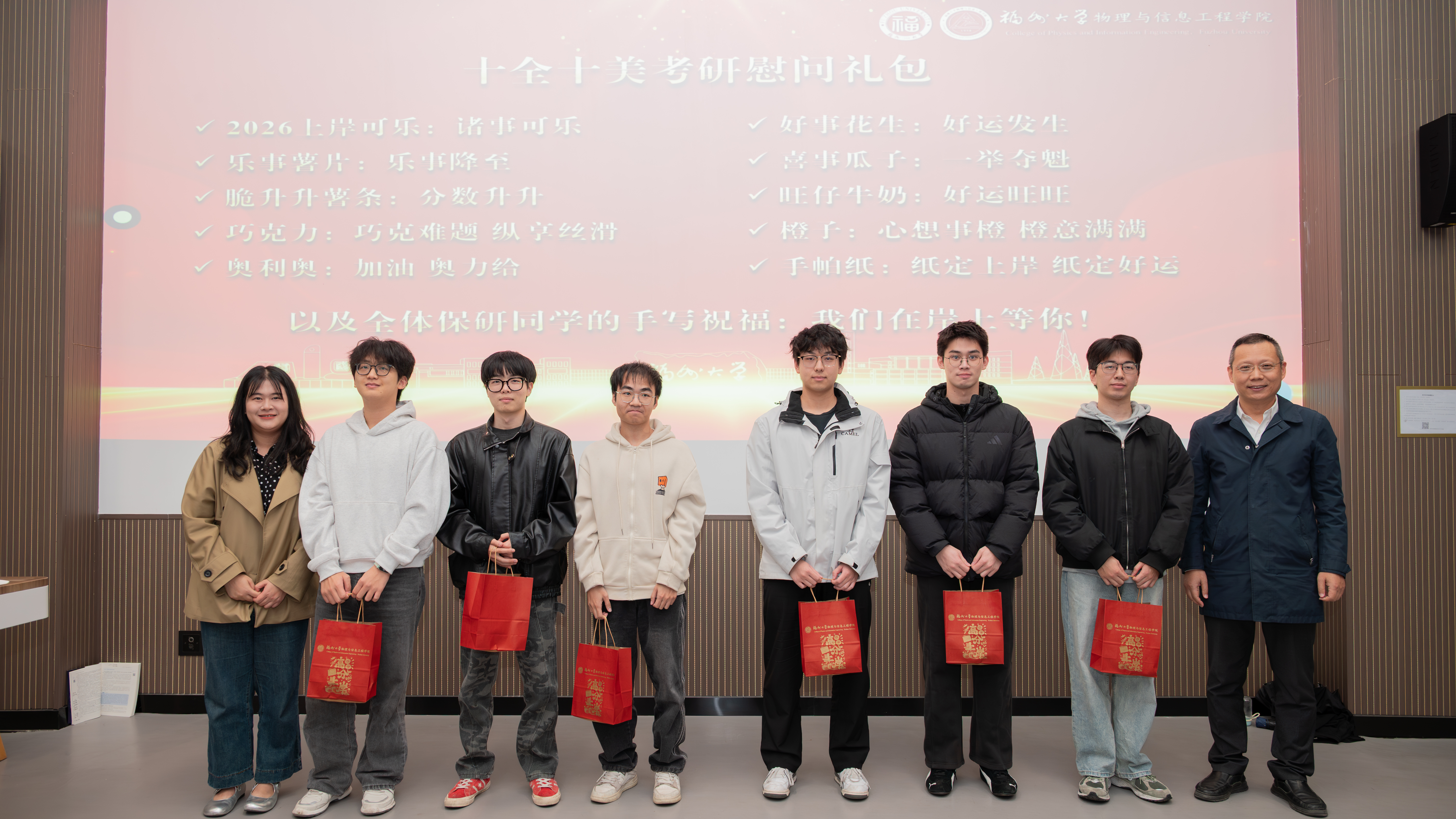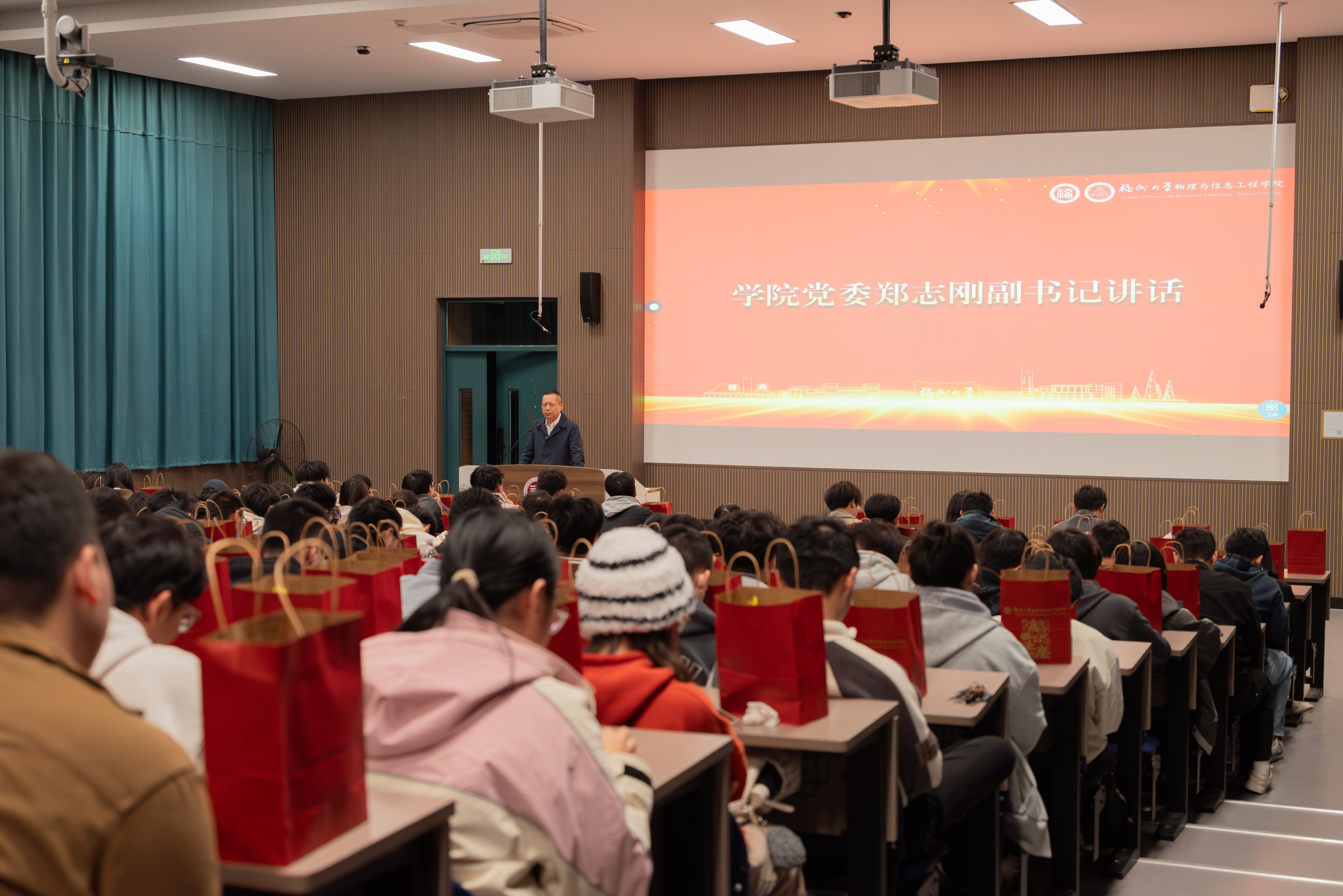 融媒中心讯/2026年全国硕士研究生统一招生考试进入冲刺倒计时,为进一步提振考研学子备考信心,严明考风考纪,营造公平诚信的应考氛围,12月12日,物理与信息工程学院在旗山校区东三-100教学楼召开2026届考研冲刺慰问暨诚信考试教育大会。学院党委副书记郑志刚、毕业班辅导员与全体2026届考研学子齐聚一堂,共赴这场“冲刺赋能盛会”。