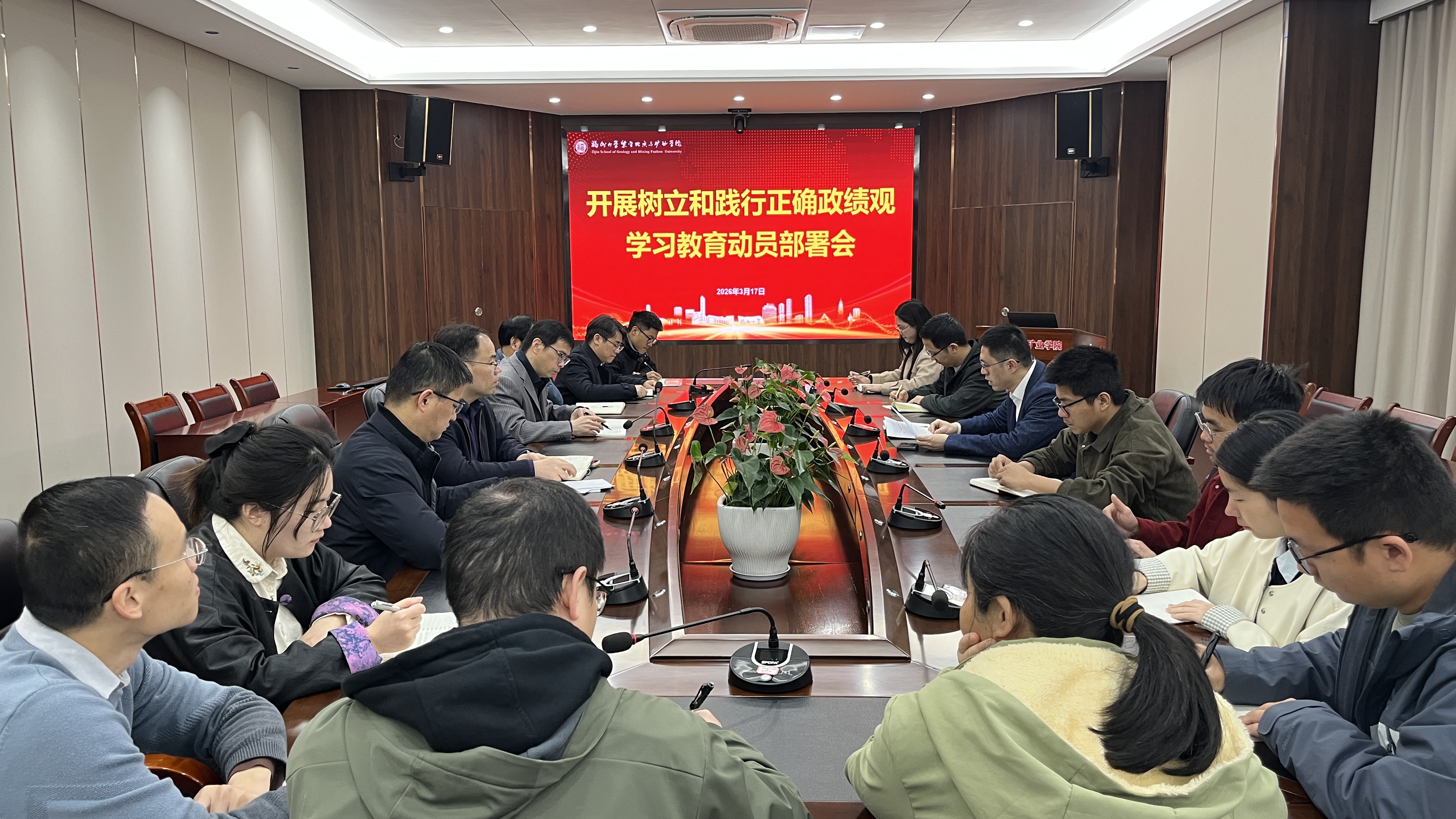 会议指出,开展树立和践行正确政绩观学习教育,是推动全面从严治党向纵深发展的重要举措,也是抢抓“十五五”开局机遇、加快学院高质量发展的关键抓手。全院党员干部要切实增强政治自觉与行动自觉,将正确政绩观贯穿办学治院全过程。