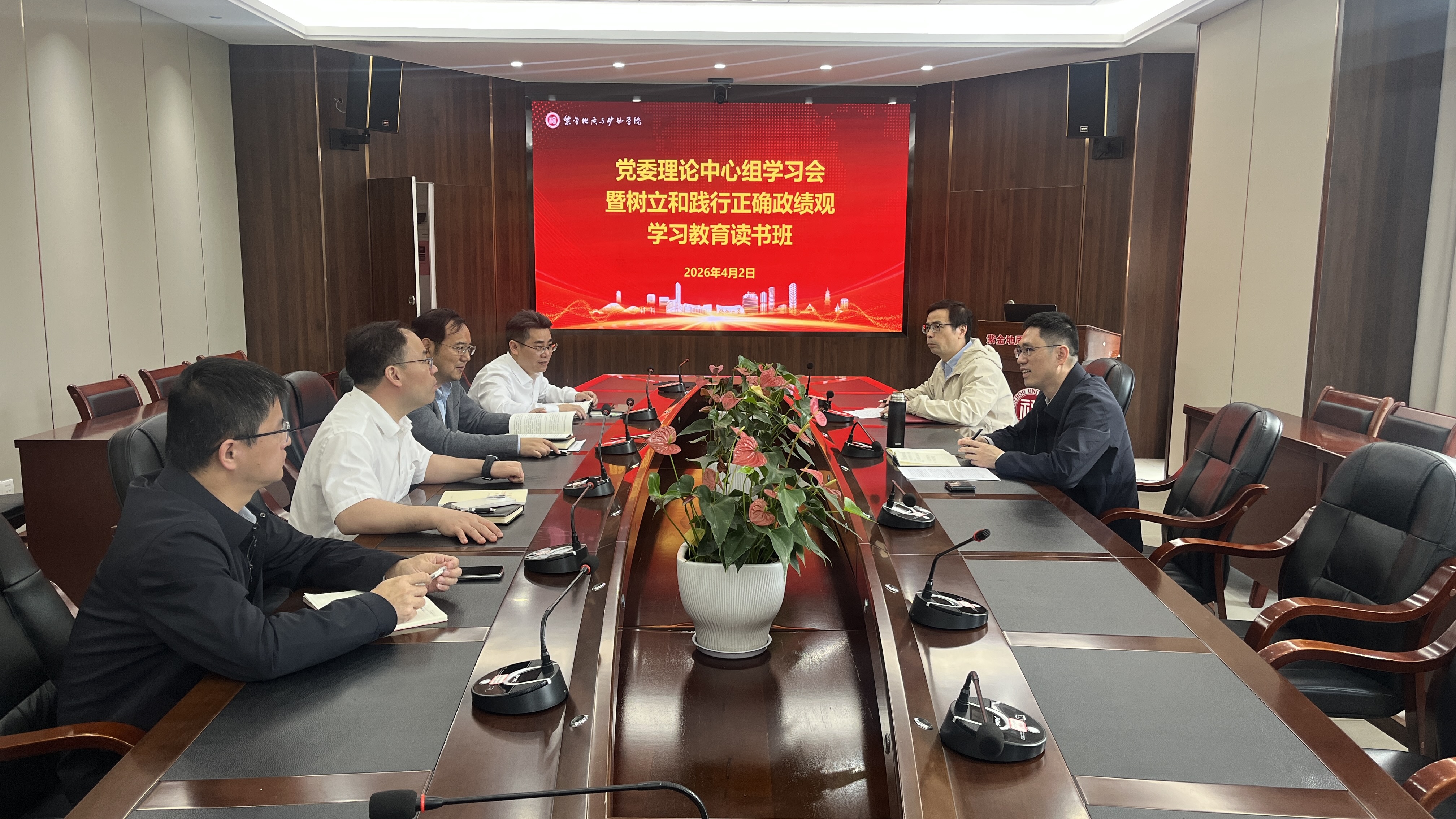 融媒中心讯/4月2日,紫金地质与矿业学院党委举办理论学习中心组学习会暨树立和践行正确政绩观学习教育读书班,深入学习《习近平关于树立和践行正确政绩观论述摘编》第一、二专题。学院党委书记郑寿主持并作领学,全体领导班子成员参加学习。