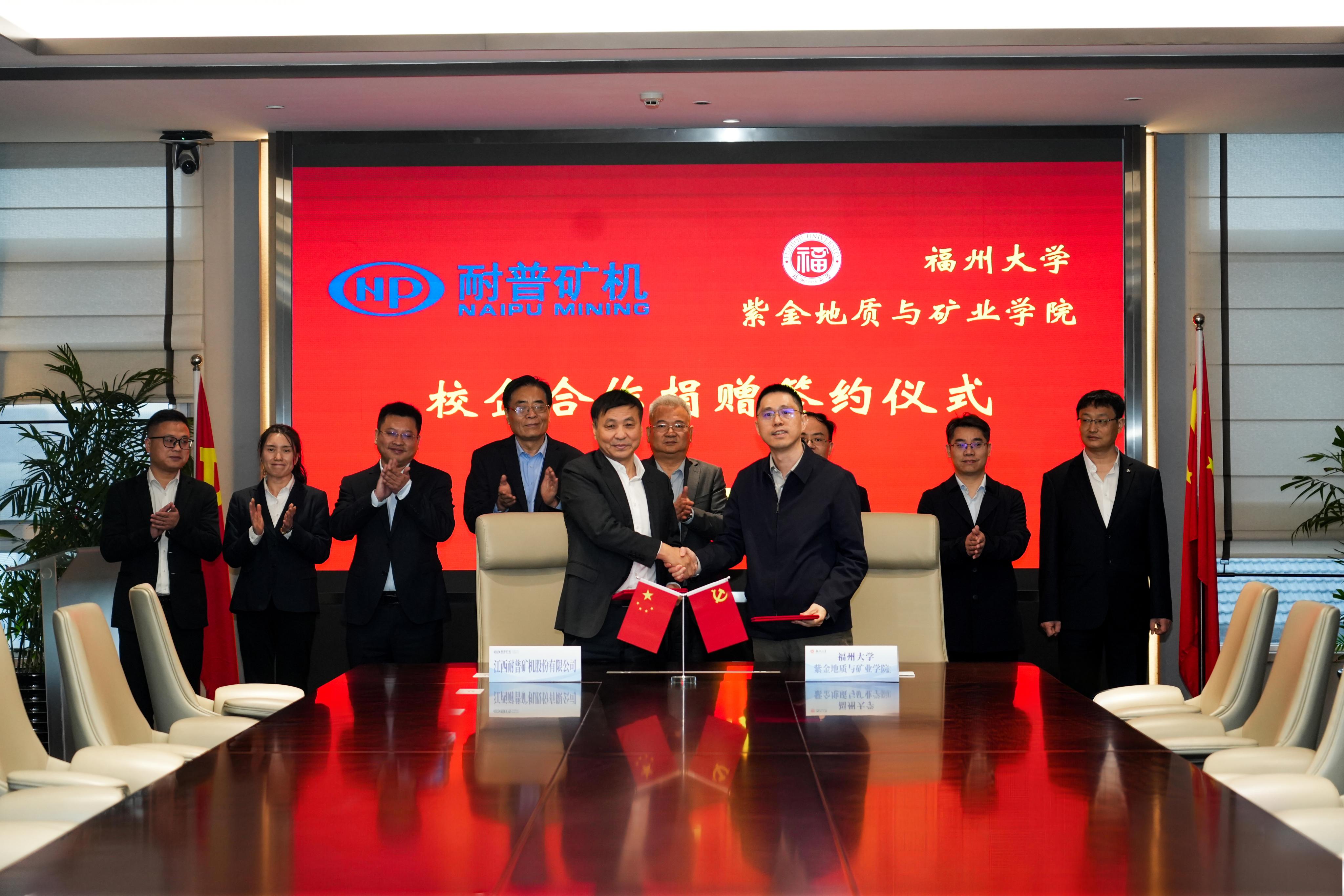 融媒中心讯/4月3日,福州大学紫金地质与矿业学院与耐普矿机股份有限公司校企合作签约授牌仪式在江西耐普矿机总部举行。学院党委书记郑寿、院长衷水平、副院长胡建华、院长助理左蔚然,耐普矿机董事长郑昊等出席活动。