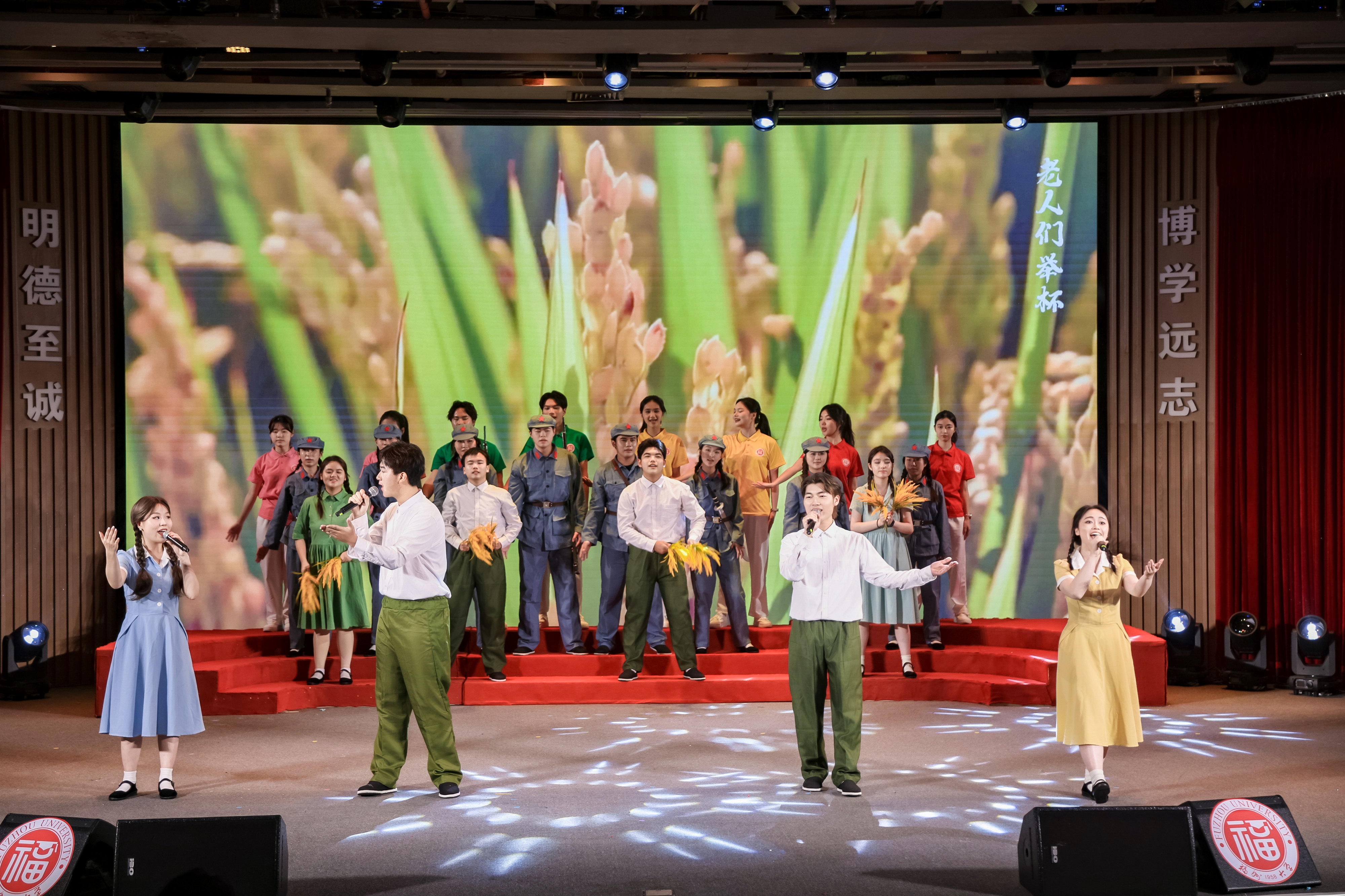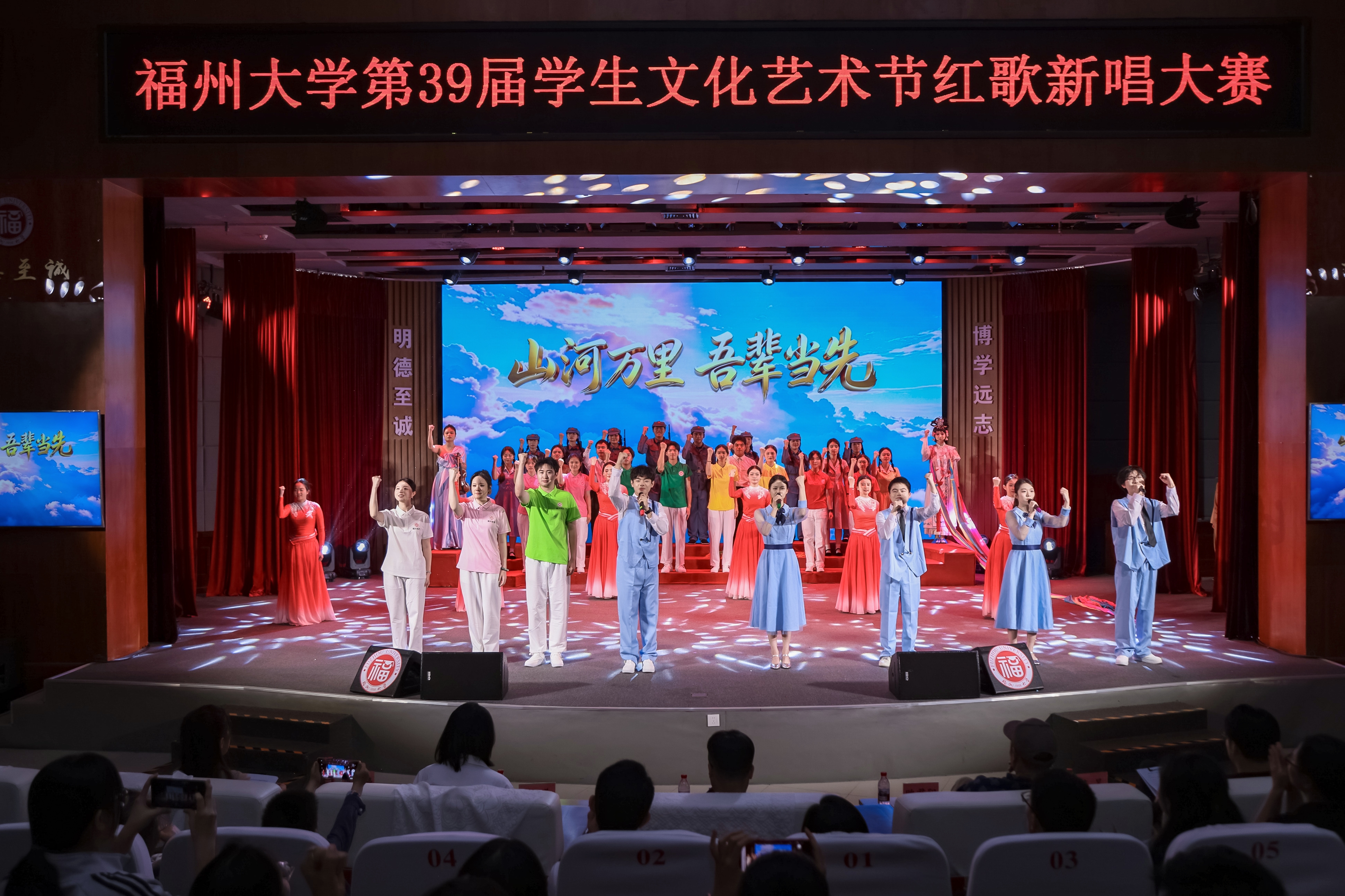 融媒中心讯/歌声传初心,红韵润芳华。在刚刚落幕的福州大学第39届学生文化艺术节红歌新唱大赛中,由电气工程与自动化学院、经济与管理学院、环境与安全工程学院三院联合创作选送的原创节目《寻声万疆》凭借深刻的内涵、创新的形式与极强的感染力,从众多作品中脱颖而出。经专业评审,节目以94.34分的最高分斩获大赛第一名,荣获一等奖。