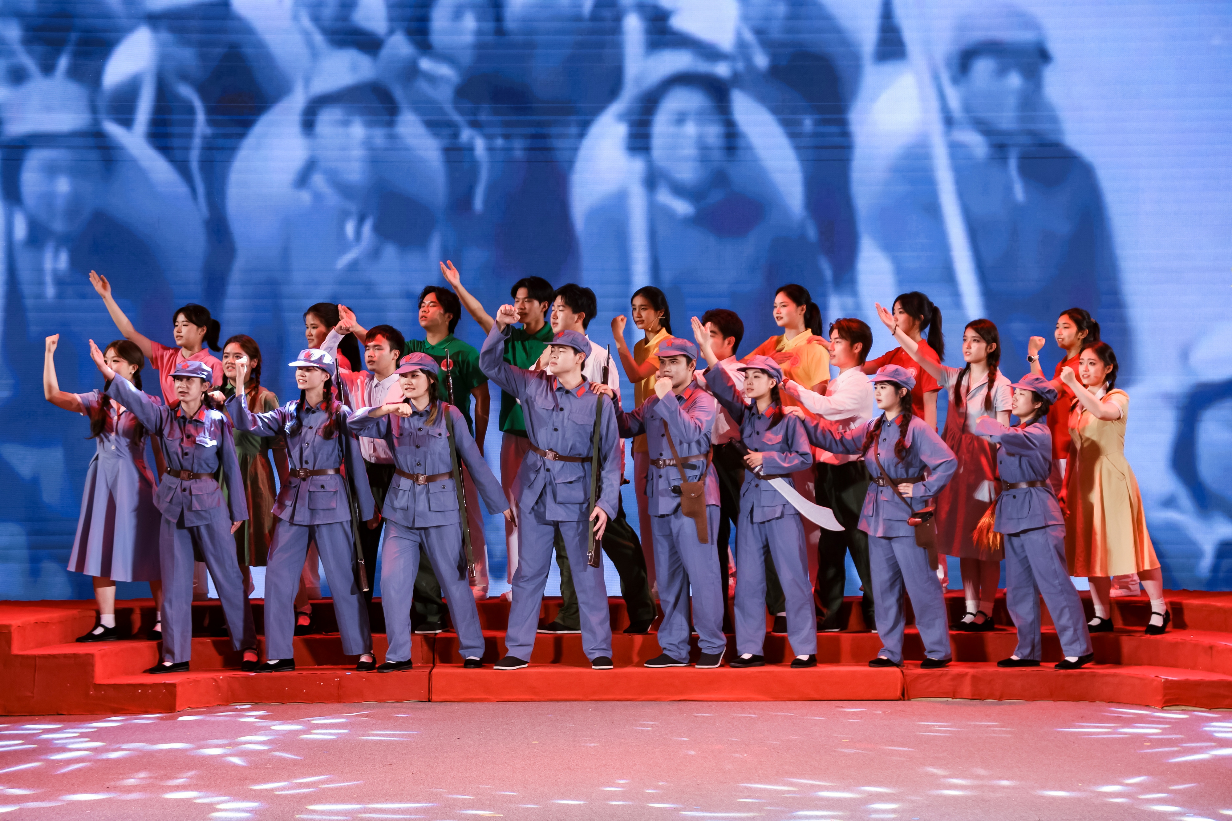红歌新唱,守正创新。《寻声万疆》突破传统串唱形式,打造完整的戏剧性舞台叙事。节目以三院青年为主角,结合专业特色进行深度融合创排。学子们循着百年奋斗征程展开寻声之旅,将多首红色经典曲目巧妙串联,依次展现民族觉醒、建设岁月、改革发展等时代篇章,最终汇聚成“强国有我”的时代强音。在“以美育人、以文化人”理念引导下,节目依托跨院协同融合开展艺术教育,厚植学生家国情怀。作品既保留红歌的赤诚底蕴与厚重,又融入青年视角创新表达,生动诠释红色基因代代相传,充分彰显三院学子传承红色血脉、奋进新时代的青春风貌。